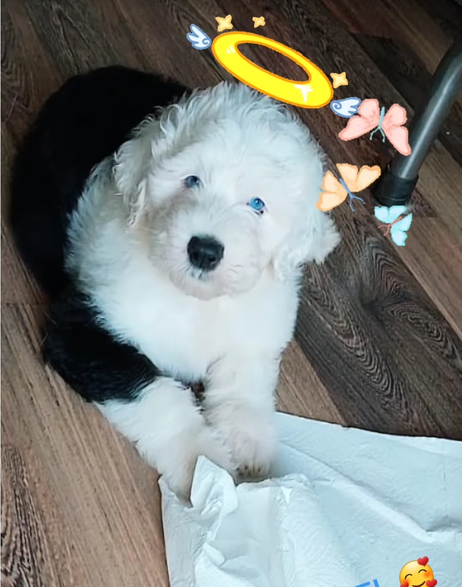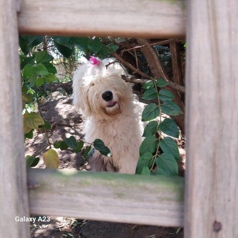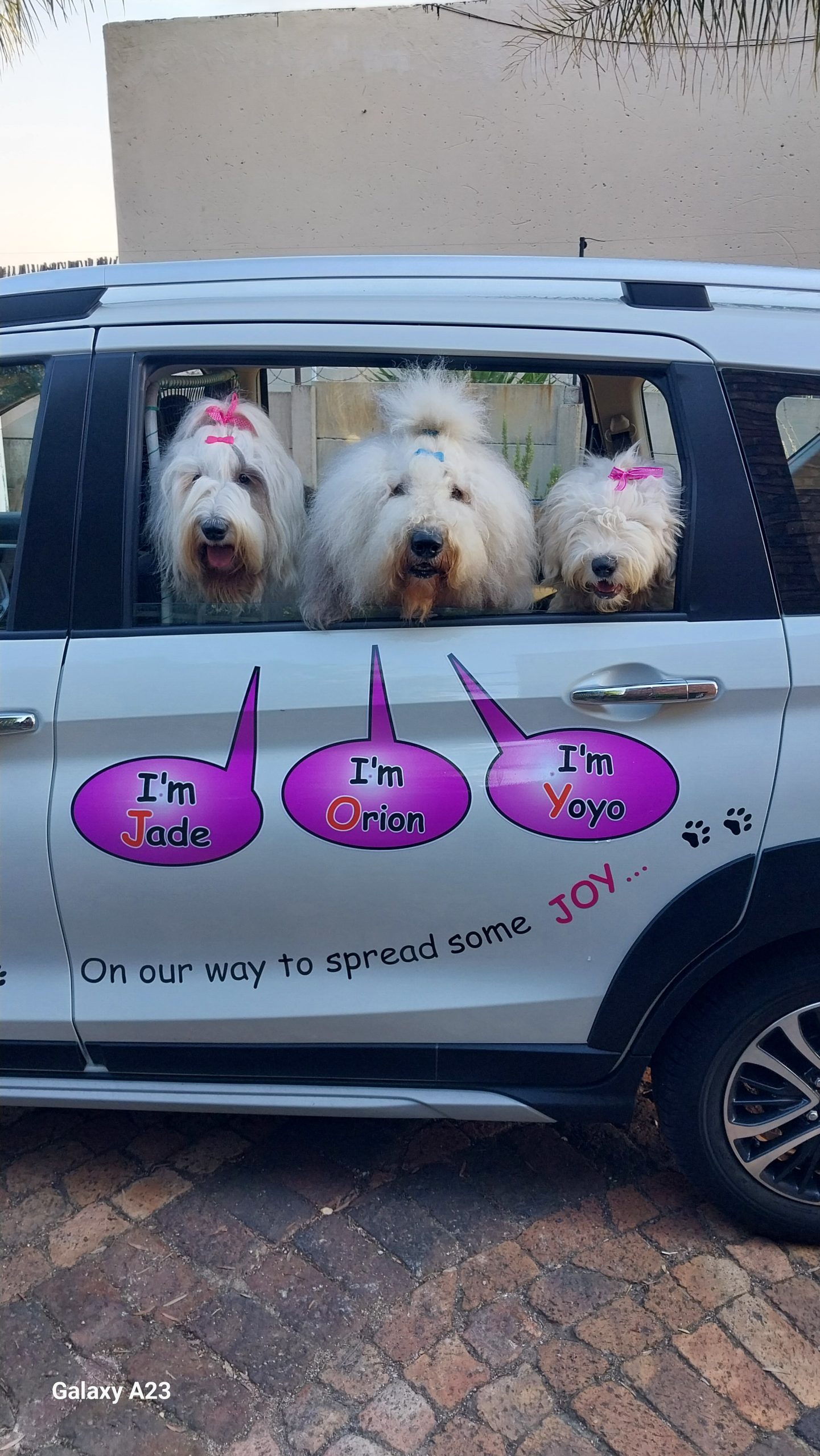 She has the most beautiful blue eyes. She loves her new home and explores the garden confidently. I will spend time taking her in the car to get used to travelling and meeting people. She has a lovely nature and enjoys people and being petted – she is going to be a wonderful JOY Dog for sure.